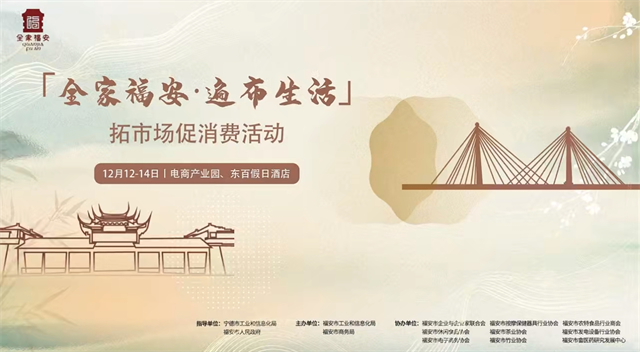 “全家福安,遍布生活”拓市場促消費活動將在福安市電商產業園設置“全家福安”主題展示館,集中展示福安市按摩器具、小件竹制品、飲食食品、畬族畬藥、家用電器、傳統工藝美術品等特色產品,現場預計將有超過40家福安工業消費品行業優質企業參加,展出面積近300平方米。